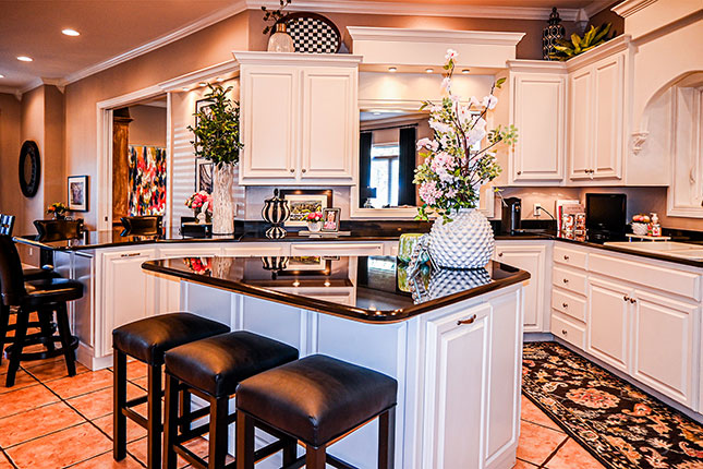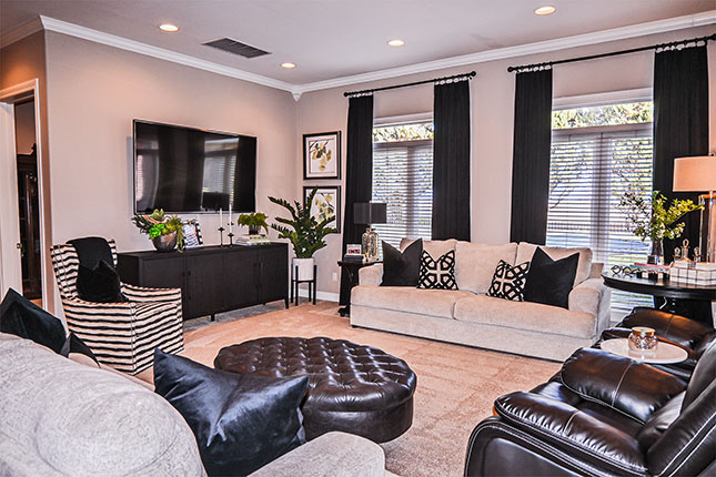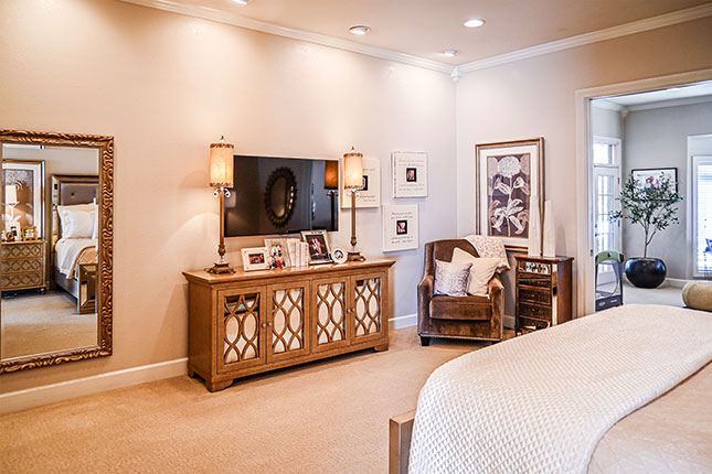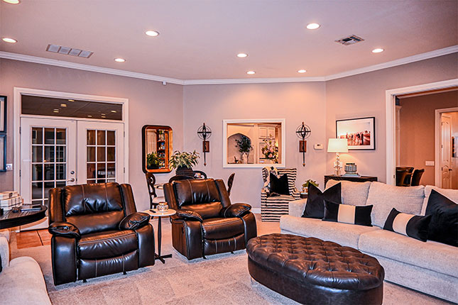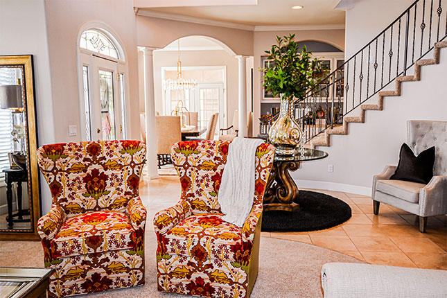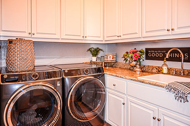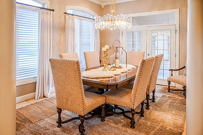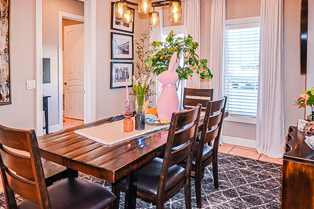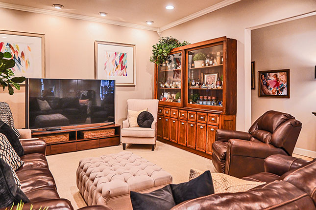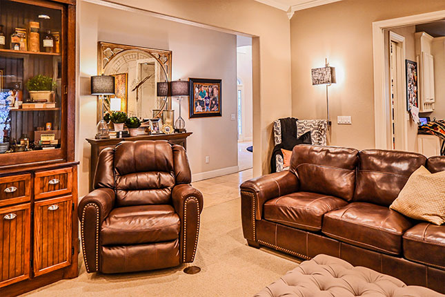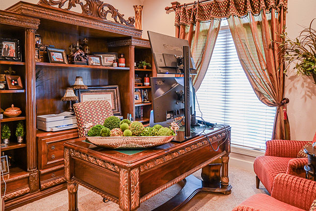 Work from home in the dedicated office space, and take advantage of the spacious three-car garage, complete with an upstairs multi-purpose room and an additional garage space for golf carts or equipment. A separate mother-in-law or guest suite provides added flexibility for multi-generational living or hosting guests. The beautifully landscaped exterior includes a circular driveway, mature trees, colorful flower beds, and dry rock river beds, enhancing the home's curb appeal.
