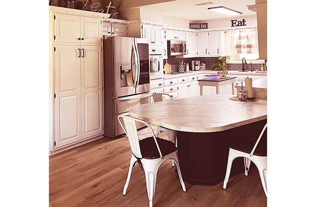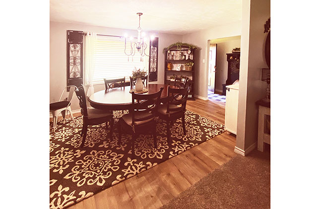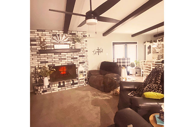 The kitchen features fresh updates and modern appliances, and the large living room with a fireplace opens to the dining room, kitchen, and front entry, creating a comfortable and inviting layout for everyday living or entertaining.