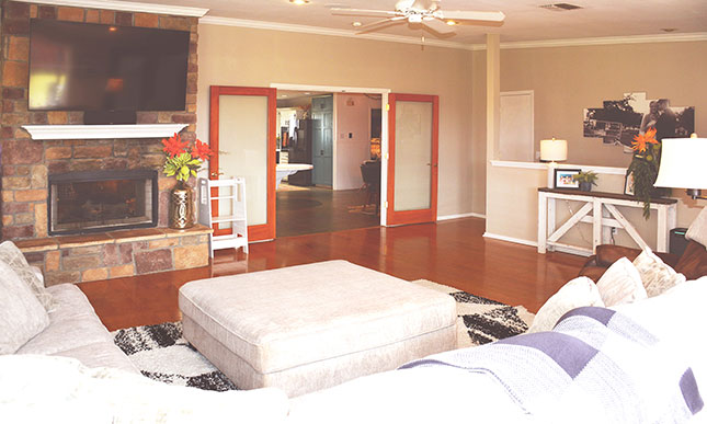 Inside, you will also appreciate two inviting living areas with a double-sided fireplace, dining area, and a well-planned kitchen with excellent storage. The oversized utility room adds everyday convenience and even more storage.