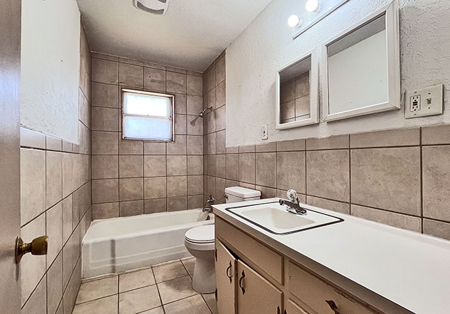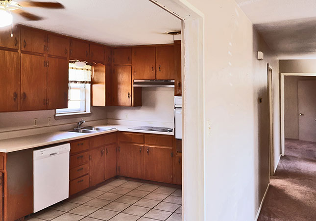 Inviting 4 bedroom, 2 bath brick home offering an open floor plan for the kitchen, dining, and living area. Recent updates include a new roof, and a renovated bathroom with upgraded plumbing.
