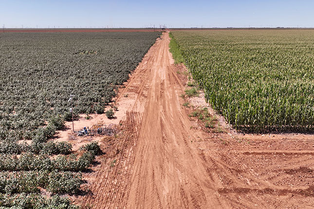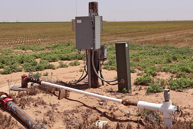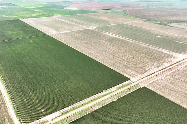 This farm is located one mile south of Dimmitt and is irrigated with 920± acres of buried drip line on 80" centers. Approximately 1050 gpm of water is supplied by 16 wells with submersible electric pumps an motors connected by high-pressure underground line.