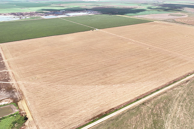 This farm consists of a 661± acre section (Tract1) and an adjoining 658-acre section (Tract 2) which corner each other. Total water production from both sections is approximately 2800 gallons per minute. All wells are connected with high pressure underground plastic pipe, leaving excess water to supply the adjacent leased ground. Buried drip lines on 40" centers have just been installed on 1050± acres of this farm. The two ½ mile center pivots previously used are being removed.
