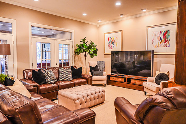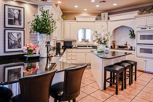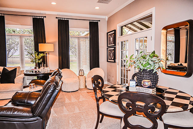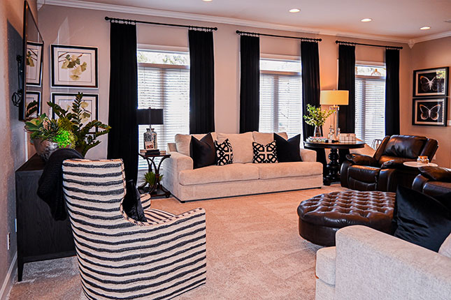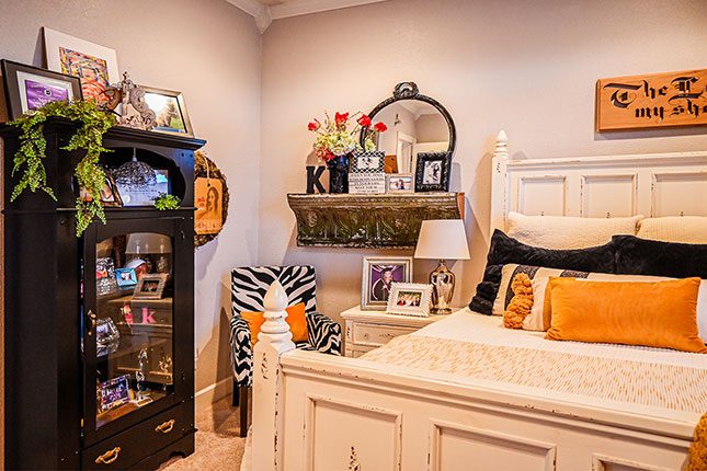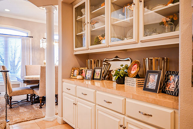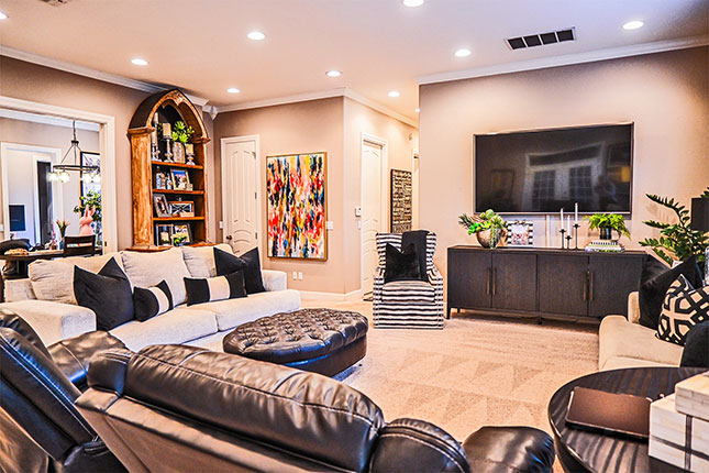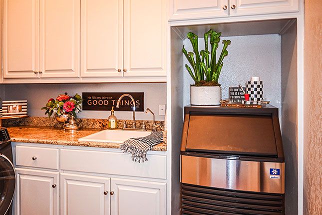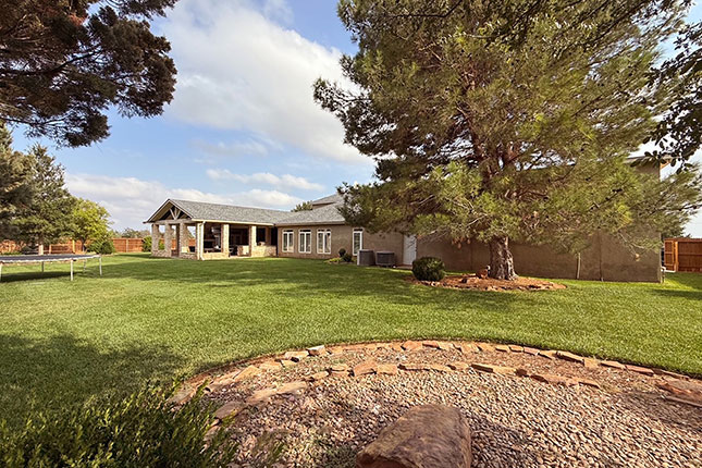 Work from home in the dedicated office space, and take advantage of the spacious three-car garage, complete with an upstairs multi-purpose room and an additional garage space for golf carts or equipment. A separate mother-in-law or guest suite provides added flexibility for multi-generational living or hosting guests. The beautifully landscaped exterior includes a circular driveway, mature trees, colorful flower beds, and dry rock river beds, enhancing the home's curb appeal.