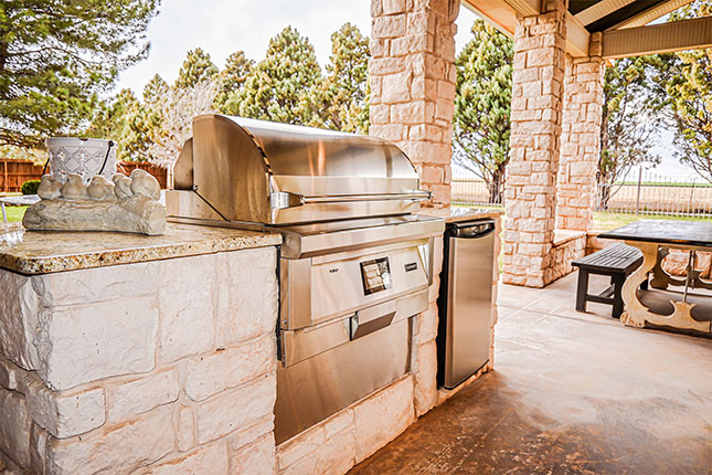 The backyard is a true oasis, featuring a covered patio with an outdoor kitchen, fireplace, dining and bar area, hot tub, and a fully fenced yard, ideal for relaxing or entertaining year-round. Located a minute from Dimmitt Country Club, you'll enjoy convenient access to the golf course, clubhouse, restaurant, and pool. Don't miss the opportunity to own this exceptional, one-of-a-kind property. Schedule your private tour today!