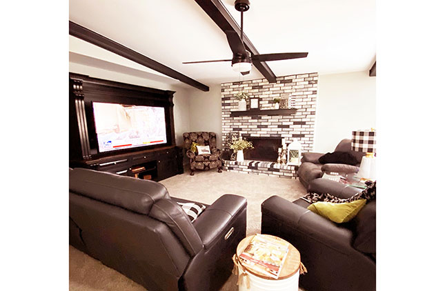 The kitchen features fresh updates and modern appliances, and the large living room with a fireplace opens to the dining room, kitchen, and front entry, creating a comfortable and inviting layout for everyday living or entertaining.