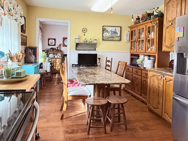 Additional updates include new windows by Quality Exteriors in August 2013, new siding by Woodbridge in July 2020, a reworked well pump in April 2022, a new HVAC system in October 2022 maintained by Mario's Heat & Air and a repaired water line to the barn in October 2023. An electric chair lift on the stairway leading to the second floor was added in February 2023. Inside, the home welcomes you with a charming country kitchen and spacious living and dining areas, perfect for gathering with family and friends.