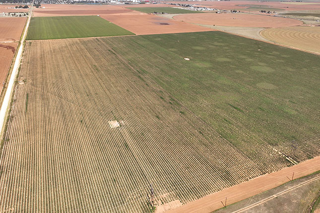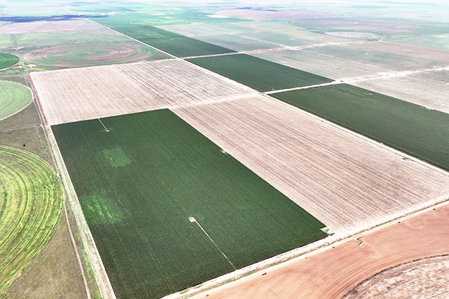 This farm is located one mile south of Dimmitt and is irrigated with 920± acres of buried drip line on 80" centers. Approximately 1050 gpm of water is supplied by 16 wells with submersible electric pumps an motors connected by high-pressure underground line.