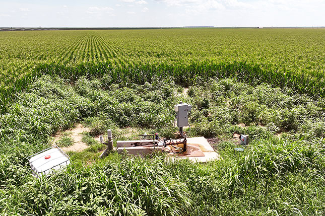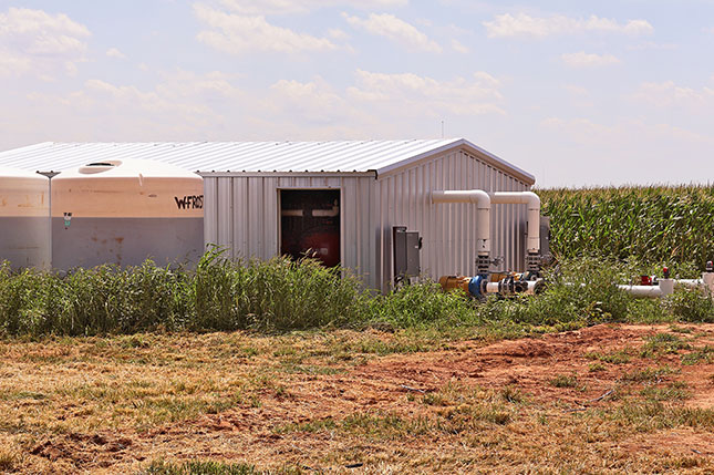 This farm consists of a 661± acre section (Tract1) and an adjoining 658-acre section (Tract 2) which corner each other. Total water production from both sections is approximately 2800 gallons per minute. All wells are connected with high pressure underground plastic pipe, leaving excess water to supply the adjacent leased ground. Buried drip lines on 40" centers have just been installed on 1050± acres of this farm. The two ½ mile center pivots previously used are being removed.