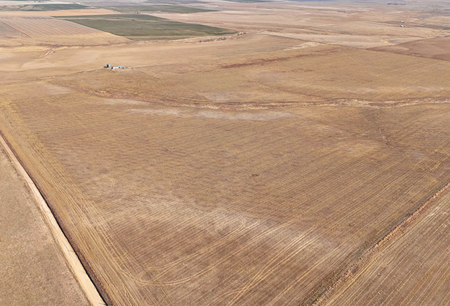 Section 21 - This tract is bordered by well-maintained county roads along the north and west boundaries. The south half is currently planted in winter wheat, while the north half is fallow and prepared for spring planting. A livestock well with a damaged windmill is located on the property. The well is reportedly good and with repair of the windmill or conversion to a solar system would provide a stable source of water for livestock and wildlife. (Owner would consider selling this tract separately.)