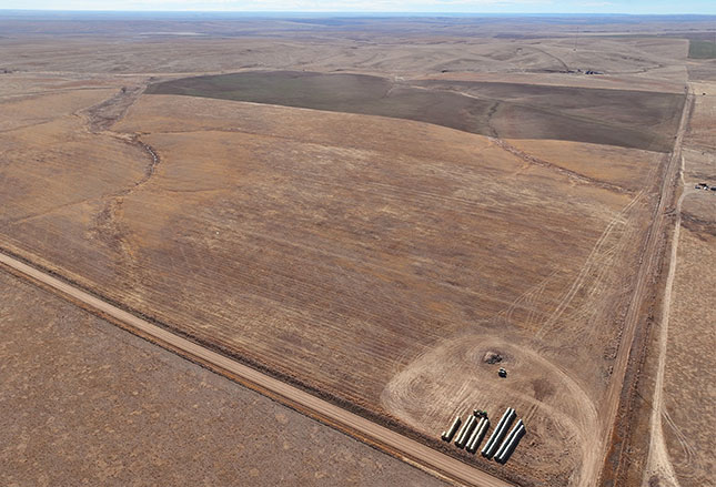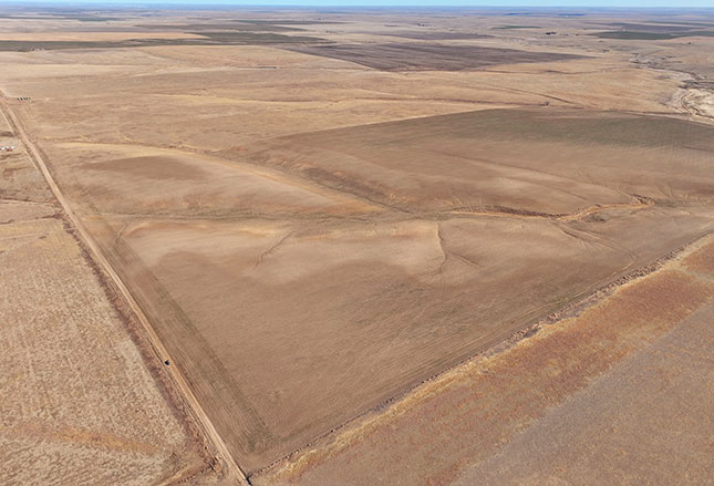 Section 25 - Winter wheat is planted on the north half, with the south half fallow and ready for spring planting. Improvements include a former building site featuring a non functional grain bin and a shop building. A power line extends to the site, offering potential utility access for future improvements. A county road runs the full length of the west boundary, providing dependable access for large equipment. The north draw reportedly presents additional development potential for a water well drilling site.